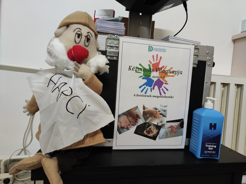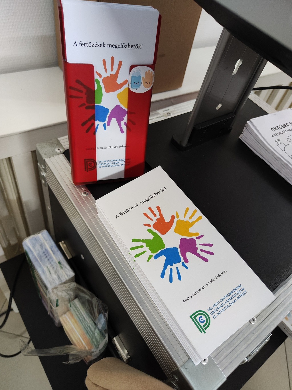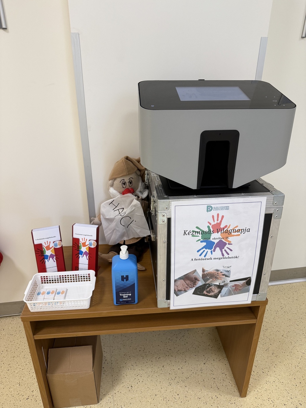 A Kézmosás Világnapja alkalmából (2025.10.15.) az Infekciókontroll Osztályunk a várakozó járóbetegek, kísérők, hozzátartozók körében négy napon át a kórház több pontján kihelyezett standokkal népszerűsítette a kézmosás fontosságát. A fertőzések megelőzése érdekében a jelenlévők szóróanyagon, a kisebbek kifestőkön és játékos feladványokon keresztül sajátíthatták el a helyes kézmosás szabályait. A szakemberek felhívták a figyelmet a köhögési etikettre, valamint az influenza elleni védőoltás fontosságára a légúti megbetegedések, a járványos időszak előtt. A kampány során a Hand In Scan berendezés kipróbálására is lehetőséget biztosított az INFK. Képgaléria.