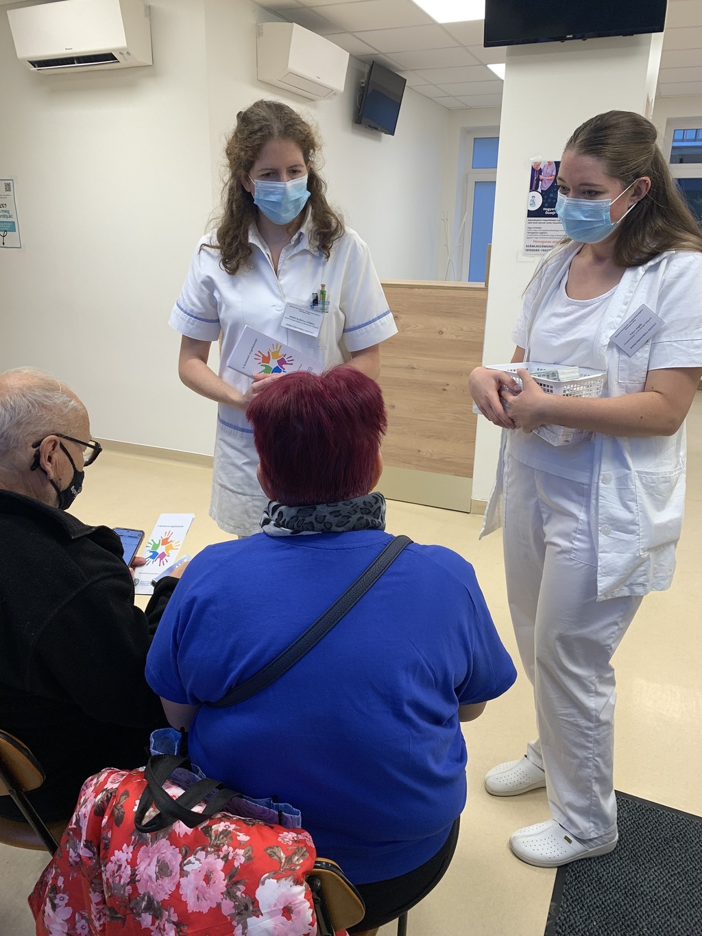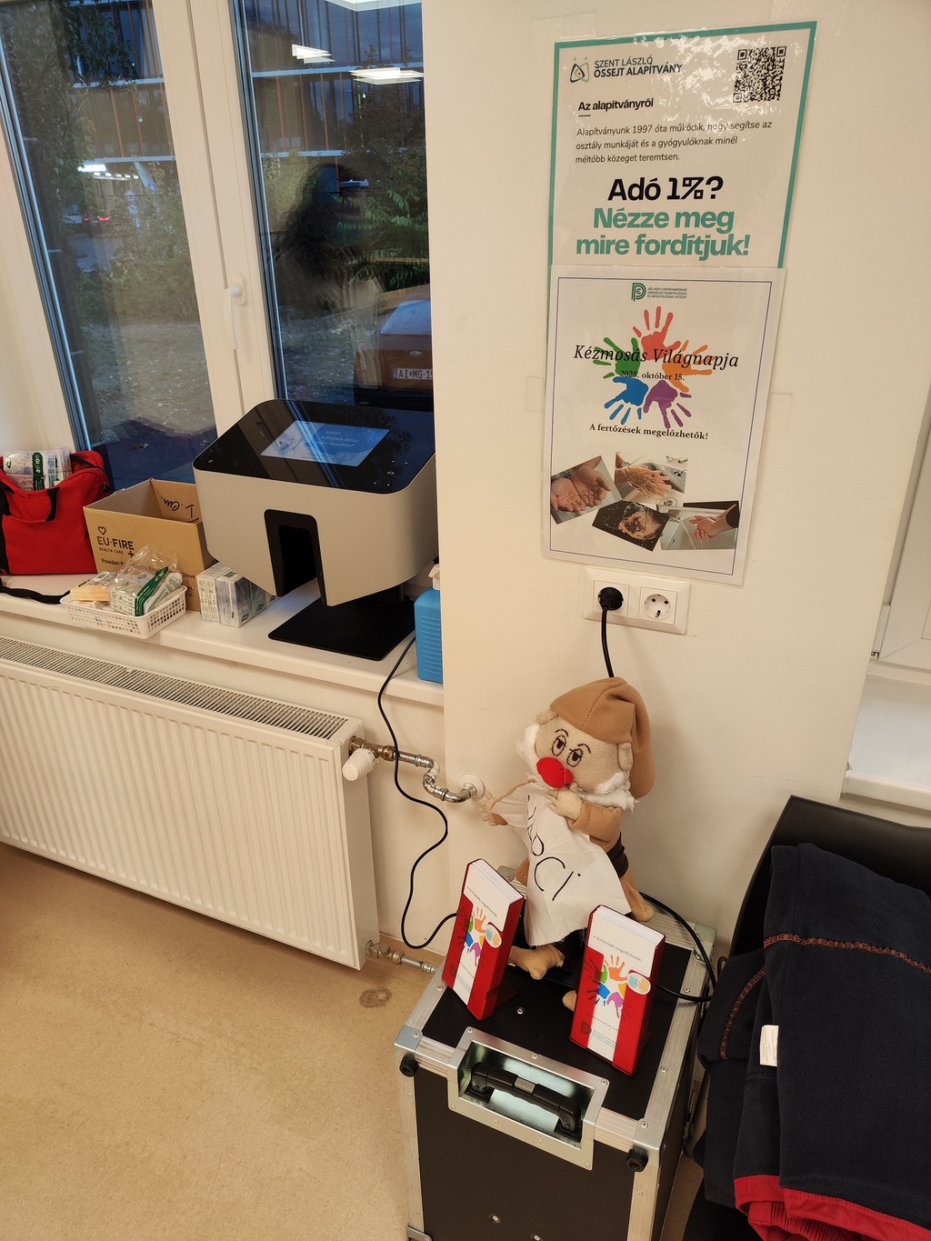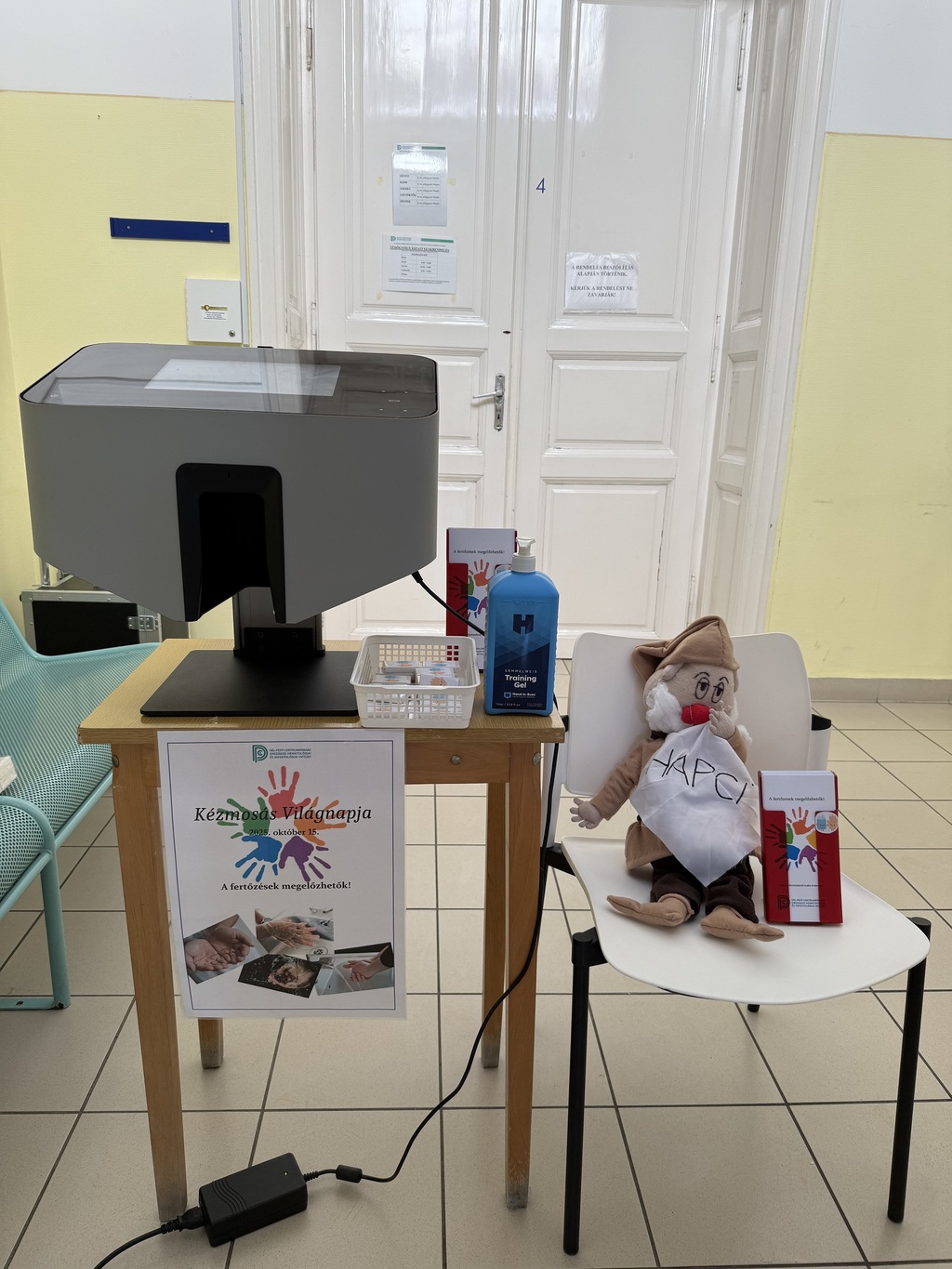 A Kézmosás Világnapja alkalmából (2025.10.15.) az Infekciókontroll Osztályunk a várakozó járóbetegek, kísérők, hozzátartozók körében négy napon át a kórház több pontján kihelyezett standokkal népszerűsítette a kézmosás fontosságát. A fertőzések megelőzése érdekében a jelenlévők szóróanyagon, a kisebbek kifestőkön és játékos feladványokon keresztül sajátíthatták el a helyes kézmosás szabályait. A szakemberek felhívták a figyelmet a köhögési etikettre, valamint az influenza elleni védőoltás fontosságára a légúti megbetegedések, a járványos időszak előtt. A kampány során a Hand In Scan berendezés kipróbálására is lehetőséget biztosított az INFK. Képgaléria.